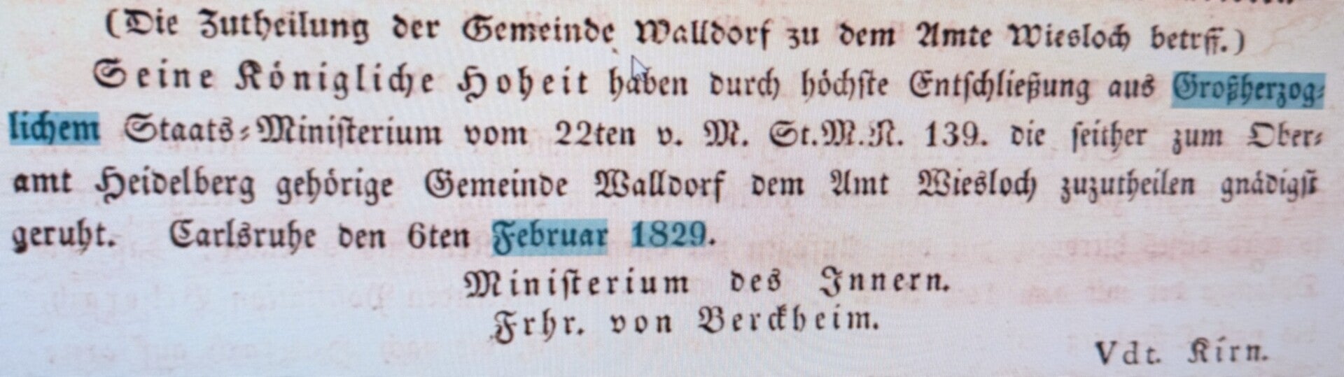 49) Als Walldorf zum Amtsbezirk Wiesloch kam
